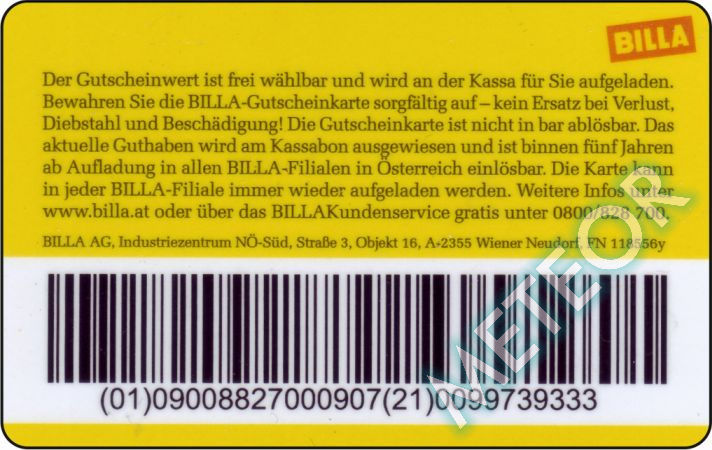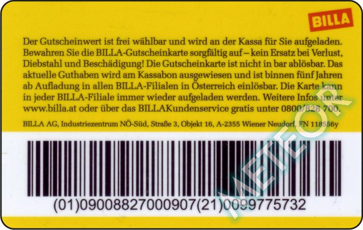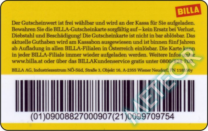 Bemerkung: zusätzliche Zeile mit Adresse BILLA AG