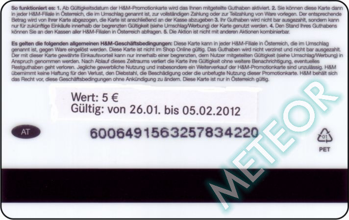 Bemerkung: RS-schmaler Magnetstreifen und Text