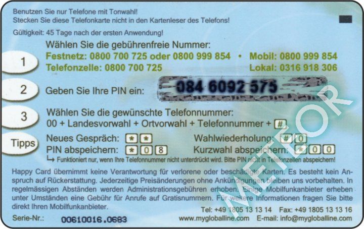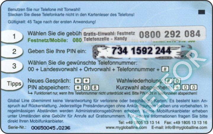 Bemerkung: PIN-Nr. rund, S-Nr. oberhalb "Hotline"