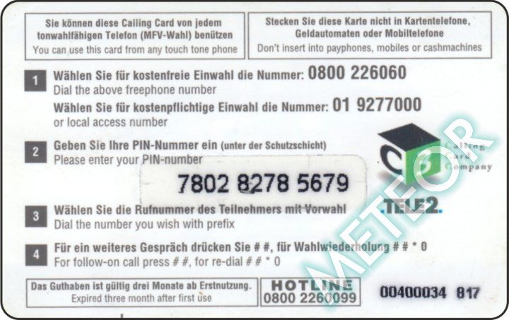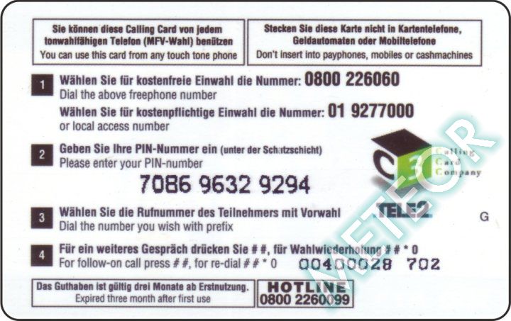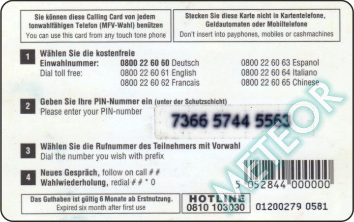 Bemerkung: PIN 3-3-3er-Block - Hotline-Nr. überdruckt (RS lila)