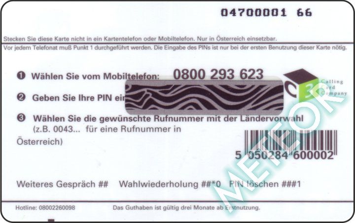 Bemerkung: Text unten: "Nur in Österreich verwendbar"