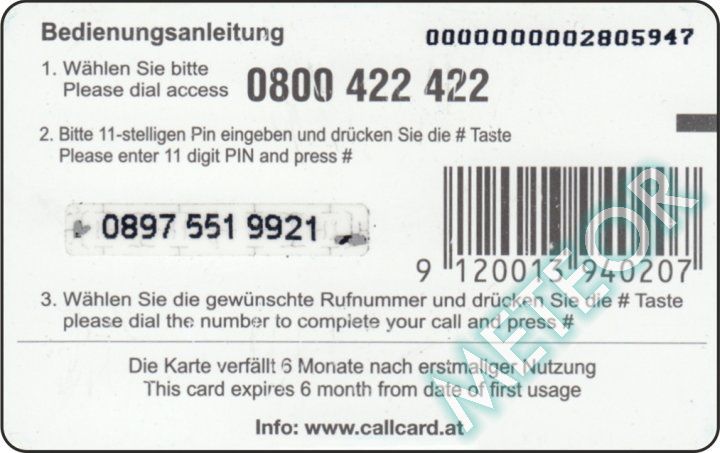 Bemerkung: zwei EW-Nr., S-Nr. u. PIN gleiche Schriftart
