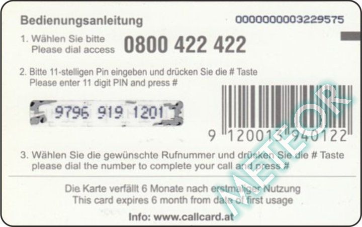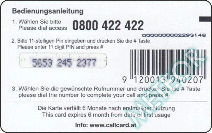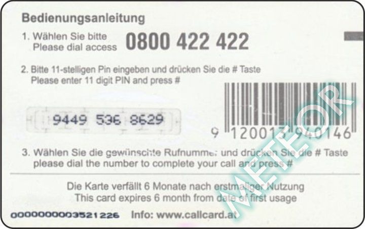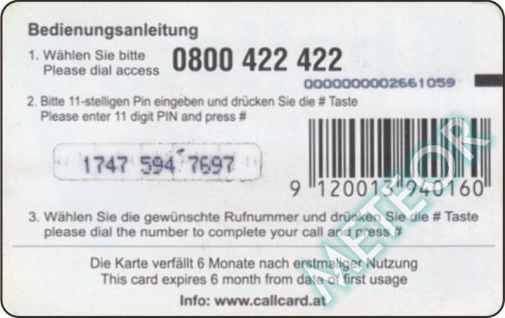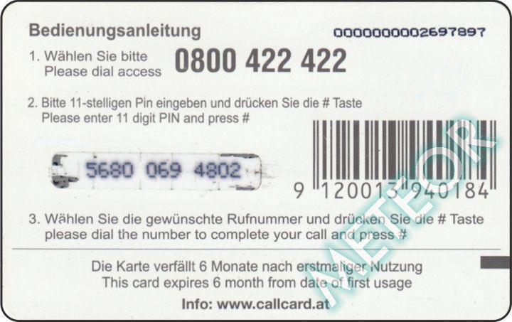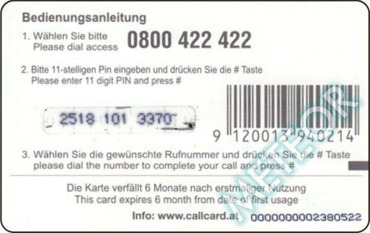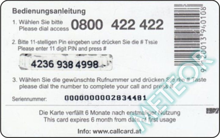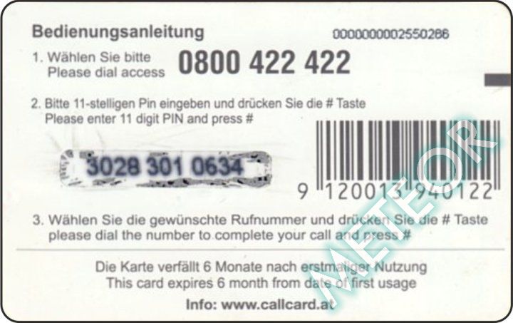 Bemerkung: EW-Nr. endet mit 422; S-Nr. rechts oben, PIN gleiche, runde Schrift