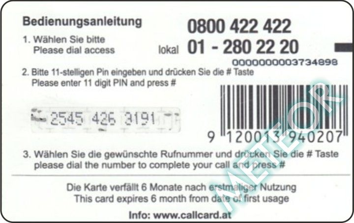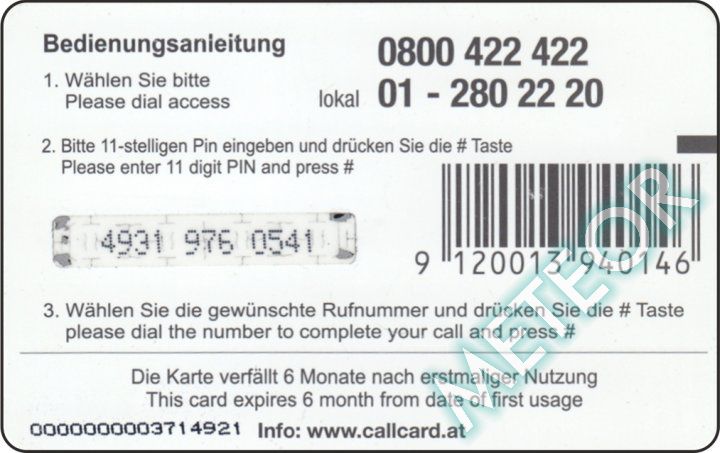 Bemerkung: Auf Vorder- und Rückseite sind bezüglich der neuen Telefon-Nummer Aufkleber angebracht