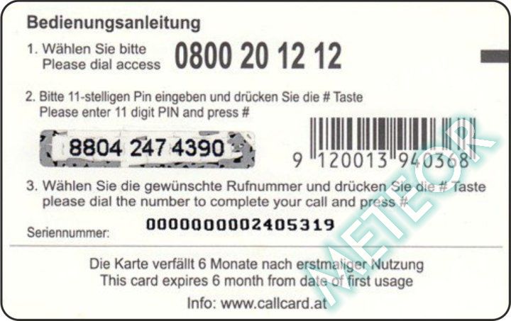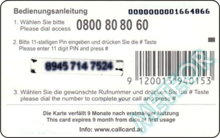 Bemerkung: zwei EW-Nr., S-Nr. u. PIN gleiche, runde Schriftart