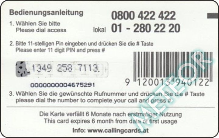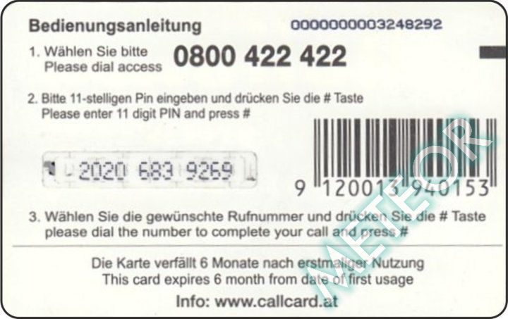 Bemerkung: EW-Nr. endet mit 422; S-Nr. rechts oben, PIN genadelt