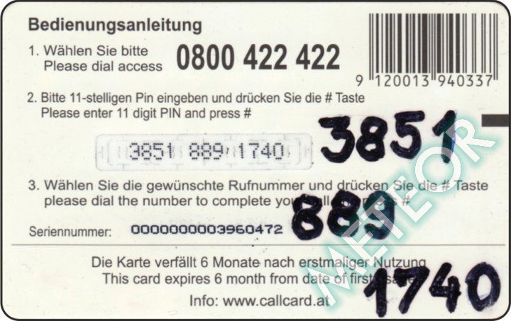 Bemerkung: EW-Nr. endet mit 422; S-Nr. rechts oben, PIN genadelt