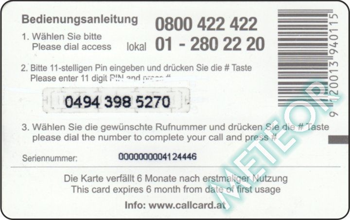 Bemerkung: EW-Nr. endet mit 422; S-Nr. rechts oben, PIN gleiche, runde Schrift