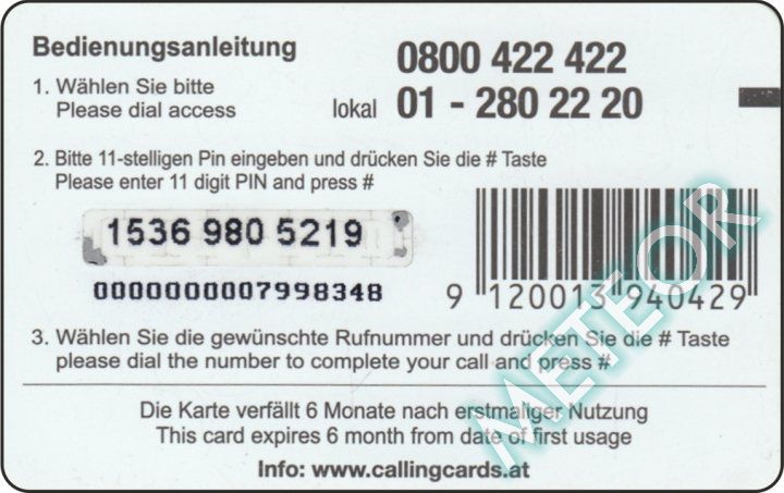 hello… Kosovo, Serbien – Neu Meteor-Code: ICC CC055-3Einheiten: 6 €Ablaufdatum: 6 Mon.Sonstige Bemerkungen: PIN-Ziffern 11er-Block