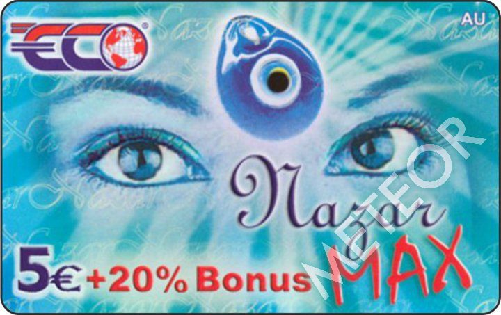 Nazar max – 5 € Meteor-Code: ECO CC021-1Einheiten: 5 €Ablaufdatum: 3 Mon.Sonstige Bemerkungen: S-Nr. hohe Ziffern