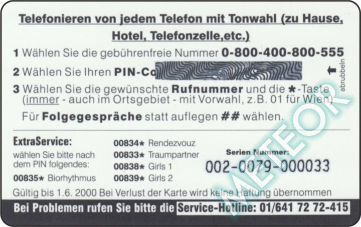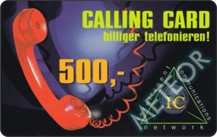 Roter Hörer 2 – 500 Meteor-Code: TNS CC023Einheiten: 500 öSAblaufdatum: 01.06.2000Sonstige Bemerkungen: Text "Calling Card" ist schmäler